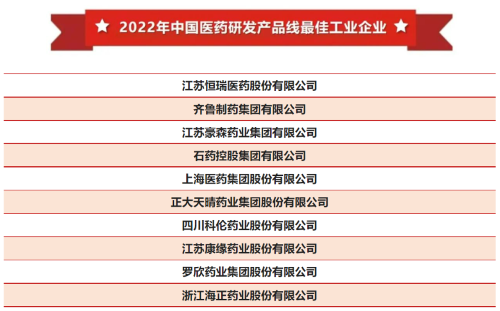 稳居榜首!九游会医药再次登顶“中国医药研发产品线最佳工业企业”
