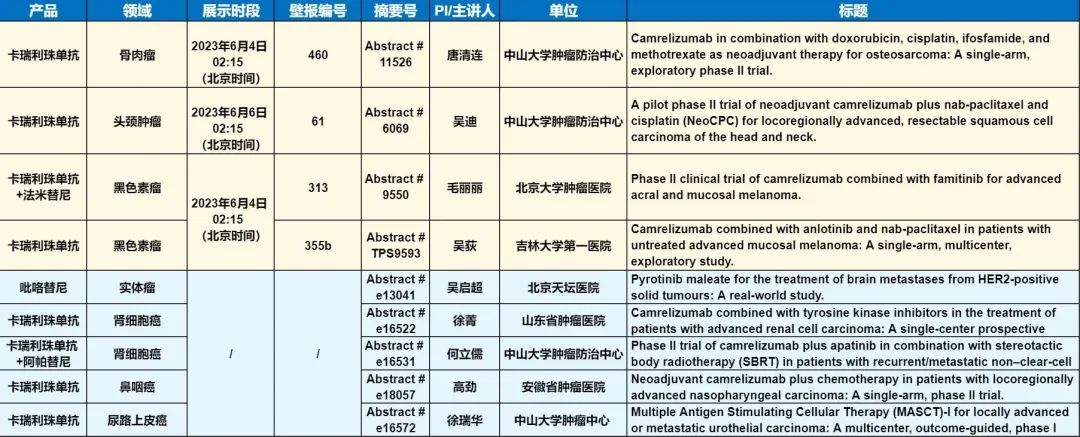 此外,在头颈肿瘤、黑色素瘤、骨肉瘤、鼻咽癌、肾细胞癌、尿路上皮癌等多个领域,卡瑞利珠单抗、吡咯替尼等产品相关研究一共入选了4项壁报展示和5项线上发表,彰显了九游会医药强大的自主研发综合实力。